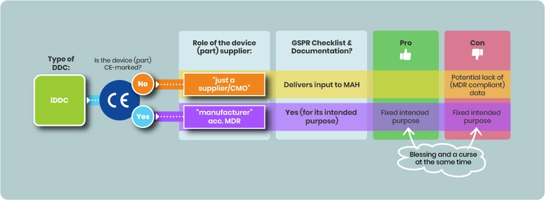 - The supplier of such a device part remains a supplier with no legal MDR responsibility for the iDDC’s device component, potentially complicating access to adequate regulatory data.